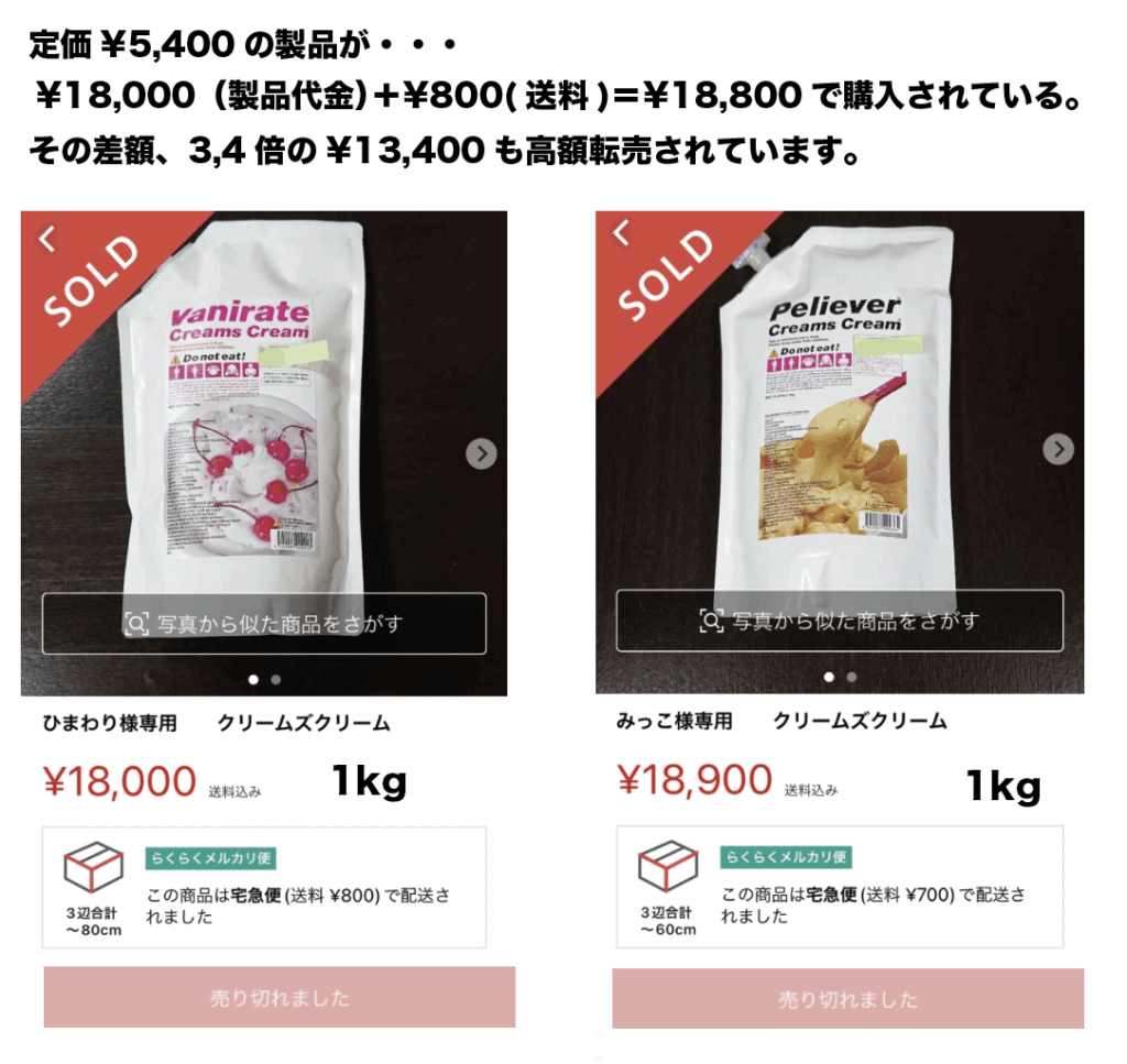 その為か、転売ヤーがサロンにて定価で購入しネット販売(メルカリ等)で定価の1,5倍〜3倍の価格で売られているんです