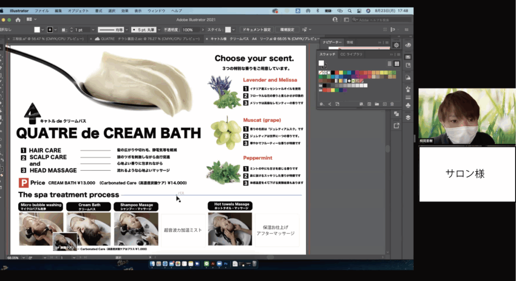 ↓サロン様とのスパメニューリーフ製作のZOOM様子